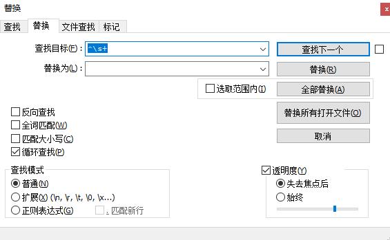 查找目标框内输入 ^\s+,替换框内输入空(就是啥都不输),如下图;